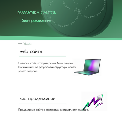 Делаем современные сайты, которые работают на ваш бизнес. Сразу настраиваем базовое SEO — чтобы вас находили в поиске и приходили новые клиенты.